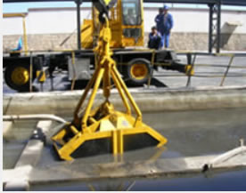 QLYD12HZ型抓斗起重機廠區(qū)池內(nèi)挖淤泥作業(yè)