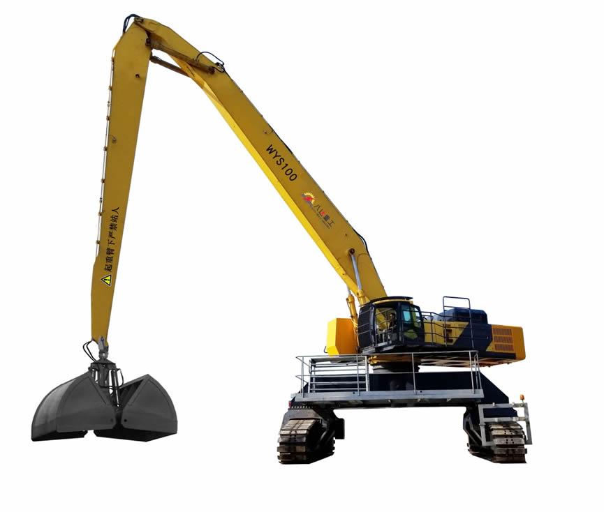 WYS series hydraulic crawler type steel grabber can be equipped with diesel engine drive, electric drive or oil electric hybrid "double power" drive system, which is reliable in quality, superior in performance and versatile in one machine.