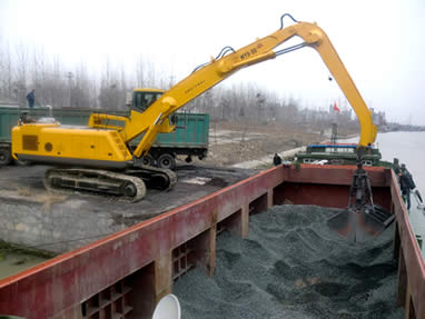 履帶式抓料機助力港口碼頭卸船