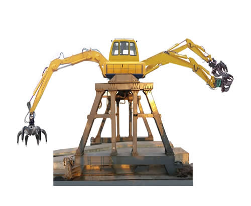 根據(jù)神華寧煤集團(tuán)凍煤卸車實(shí)際工況要求:我公司為其設(shè)計龍門軌道式三臂凍煤卸車機(jī),即在卸車機(jī)前端設(shè)計雙臂雙手配握取式振動器,握住車箱兩側(cè)箱板實(shí)施中頻振蕩,將輕微凍層及搭橋的煤炭卸下,且不損壞車體。同時在后面另設(shè)計一支單臂,配裝破冰抓手或液壓鎬,解決凍煤破冰及搭橋無法卸車問題。