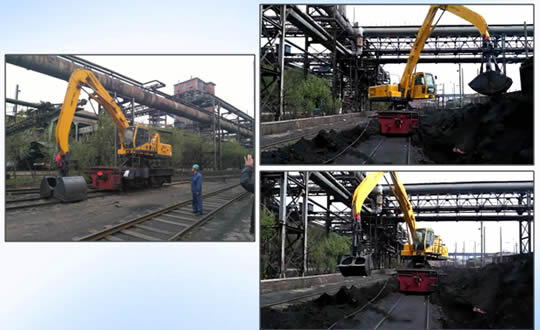 雙動(dòng)力抓料機(jī)助力火車卸煤(其他散料)