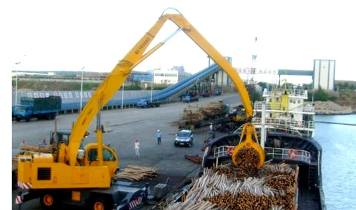 Extended Two section Arm "Double Power" Wood Grabber Strives for the Front Line of Ship Unloading at the Wharf